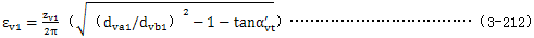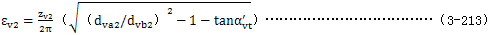 式中εv­——齒頂重合度 ,取εv1­或εv2­中的較大者,εv1­及εv2­由公式(3-212)及(3-213)確定 。