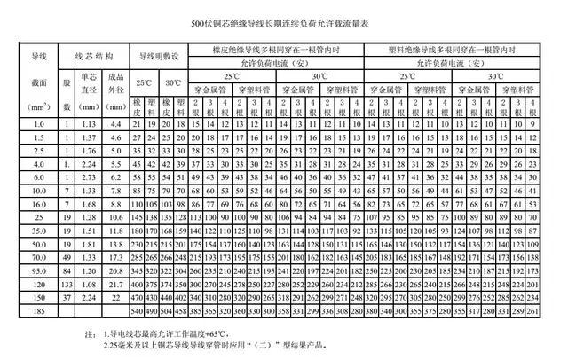 選擇導(dǎo)線的截面積首先我們要學會看懂電(diàn)線的安全載流量表 。