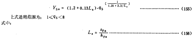 對於齒形角αn爲20°的齒傳輸線,YSa可按式(155)計算。對於其他齒形角的齒輪,可按此式近似計算YSa
