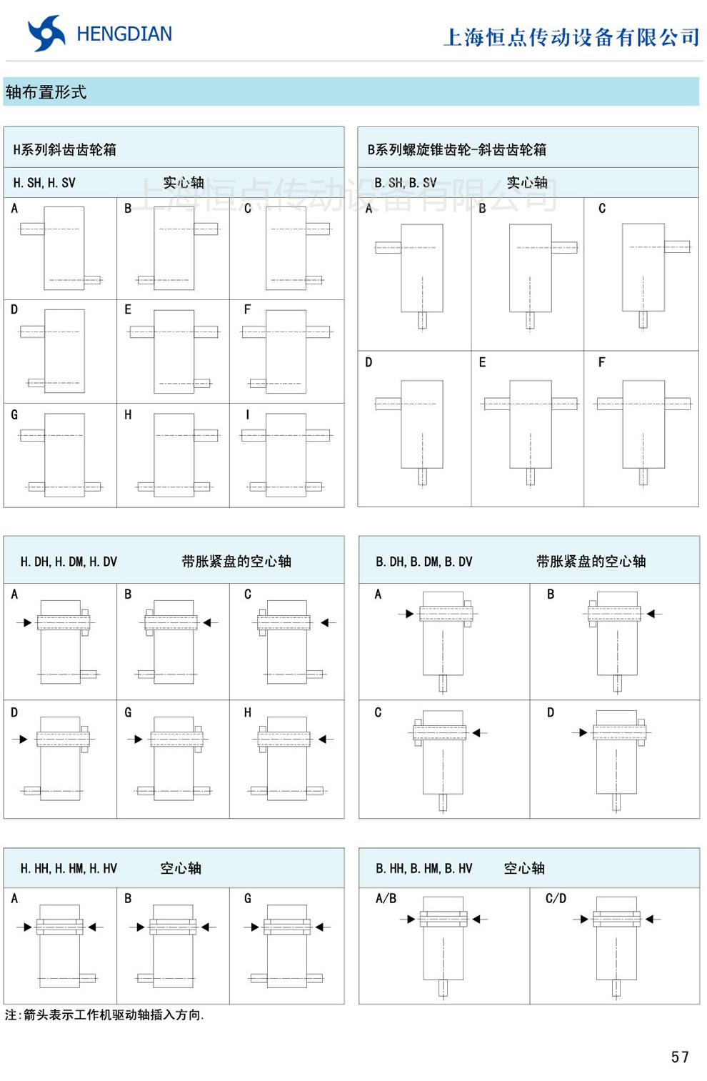HB系列軸布置形式 - HB标準工業齒輪箱