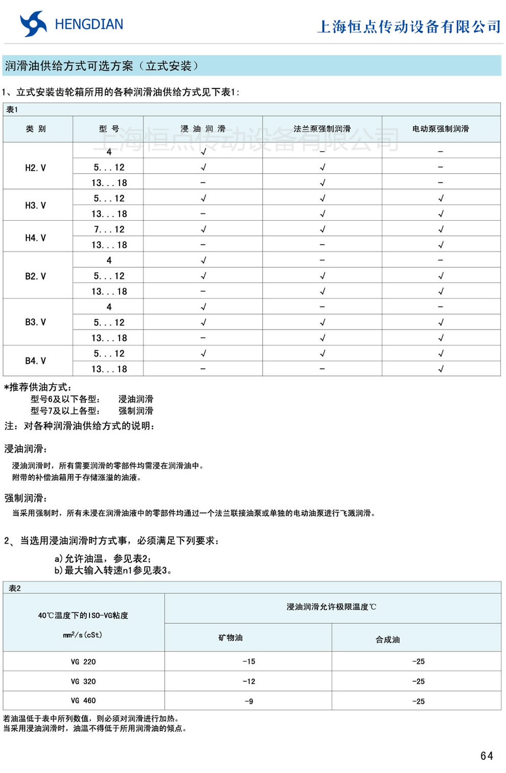 潤滑油供給方式可選方案 - HB标準工業齒輪箱