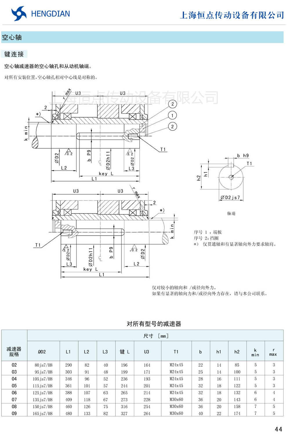 輸出空心軸詳細尺寸 - MC硬齒面減速器